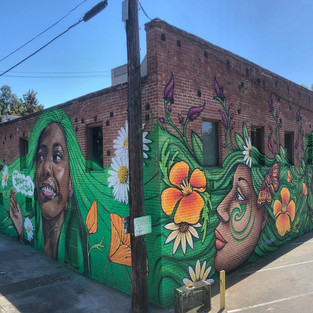 Few & Far were excited to return for the 3rd year to Sacramento's Wide Open Walls mural festival - a 10 day long event that took place at the beginning of August. Ursula X Young, Beth Emmerich, Nico & Agana came together to create this wraparound brick wall in the bustling heart of midtown Sacramento. These green goddesses highlighted California native species and people and is located at 920 20th st at J, on the outside of Big Brother Comics. Go check it out!